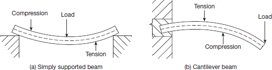 If we can all think back to beam bending theory, we know that when a beam is bent downward, the bottom half is under compression and the top half is under tensile loading. Compression is on the concave (inner) side and tension is on the convex (outer) side.