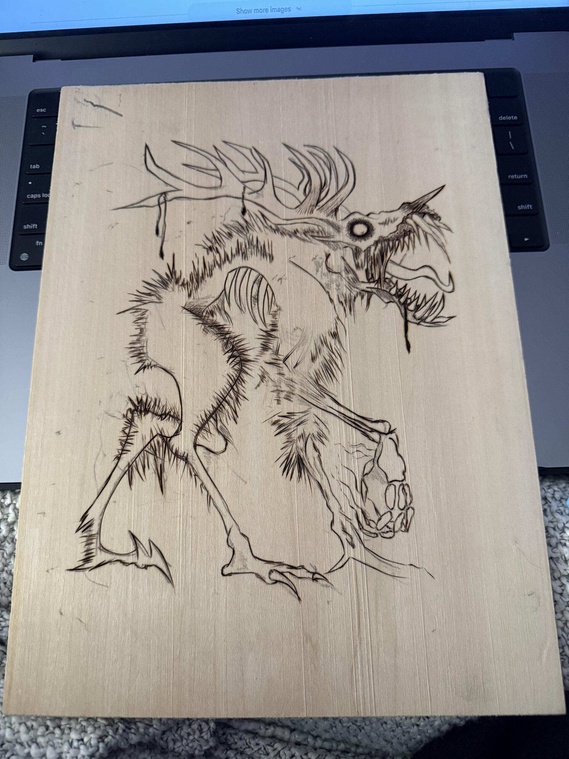 I didn’t get the wendigo I wanted, but I got harsh shadow lines that align with the dark Art Deco aesthetic I wanted. It’s a cool piece, and my cousin wants me to make her one next.