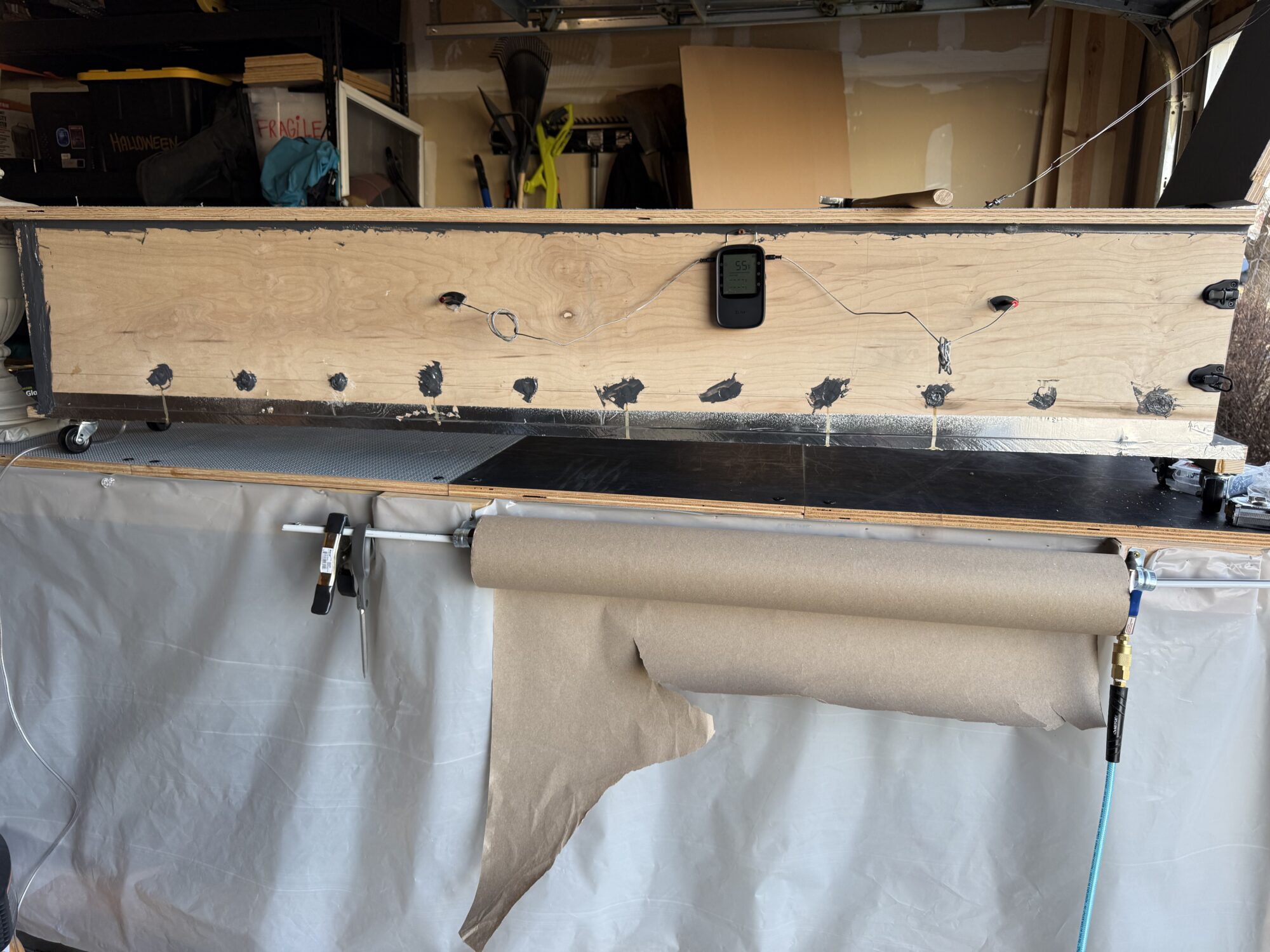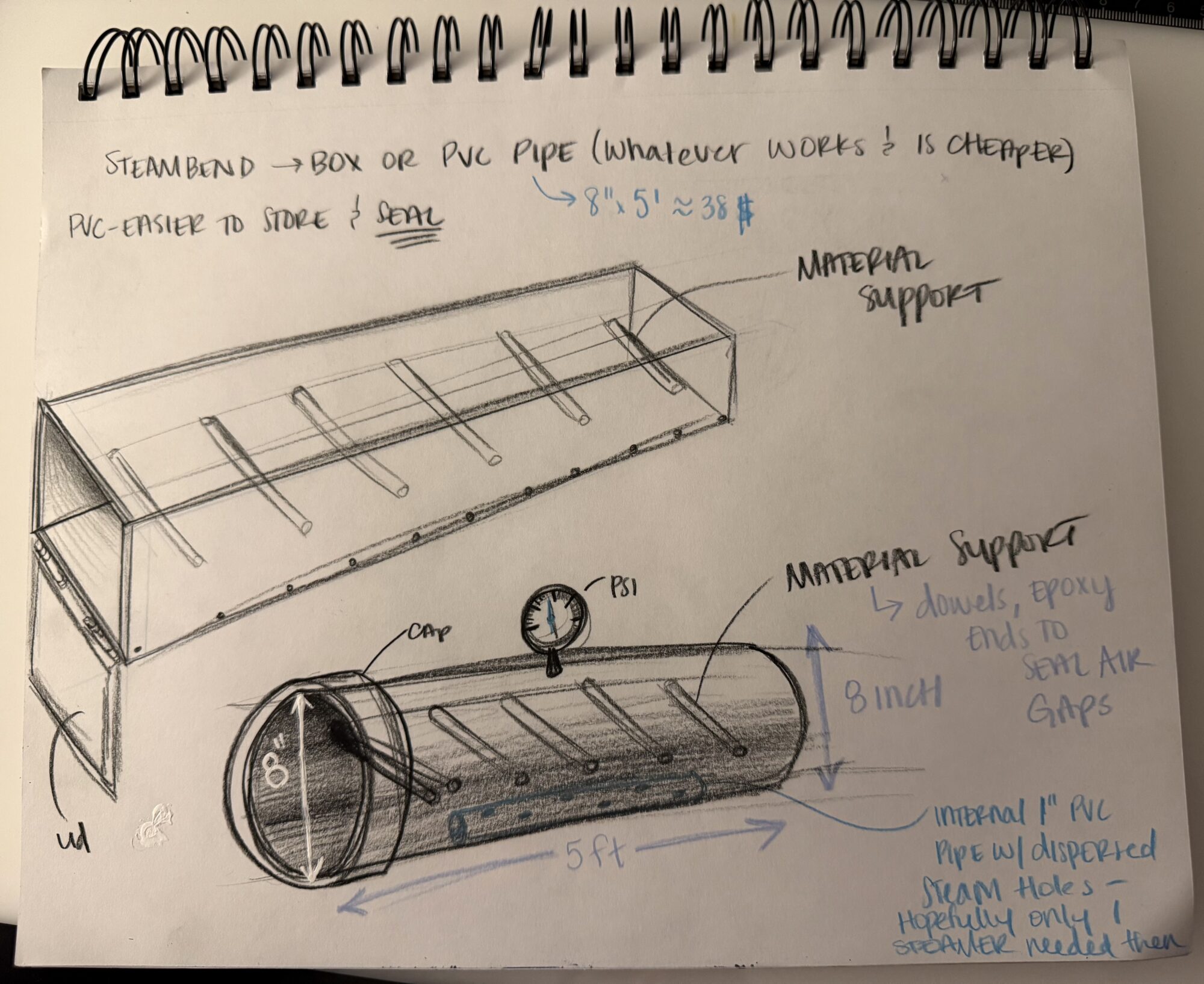 I wanted to incorporate steam-bent pieces into this, so I also had to build a steam box. The first iteration didn’t go so well (the cylindrical duct), so I had to build one the old-fashioned way (plywood box — side note, I don’t recommend using plywood. It delaminates and has a smell when steamed. It’s best to use non-treated wood, and I should have known better).