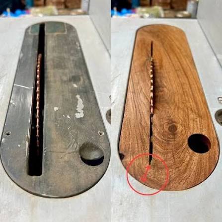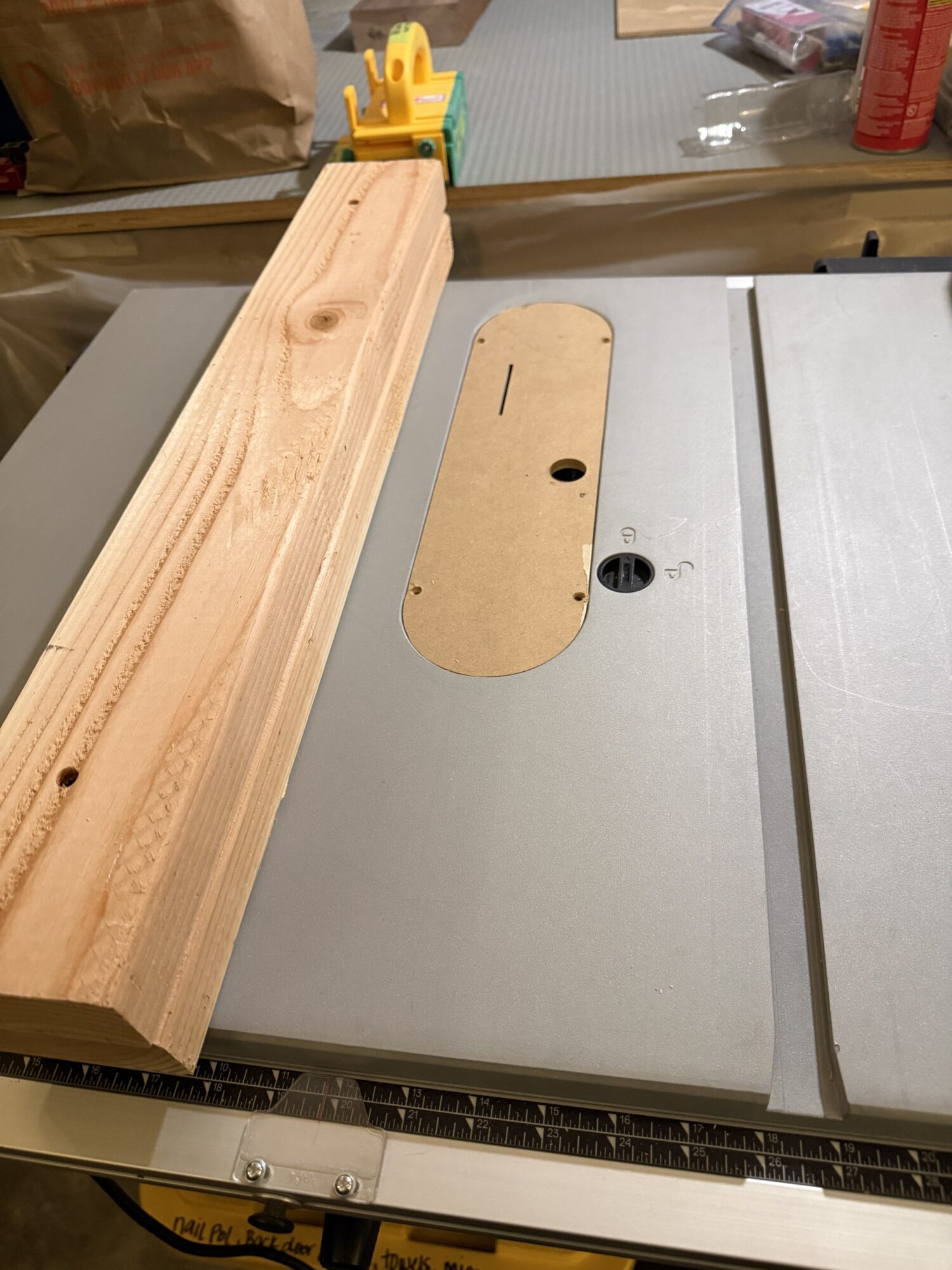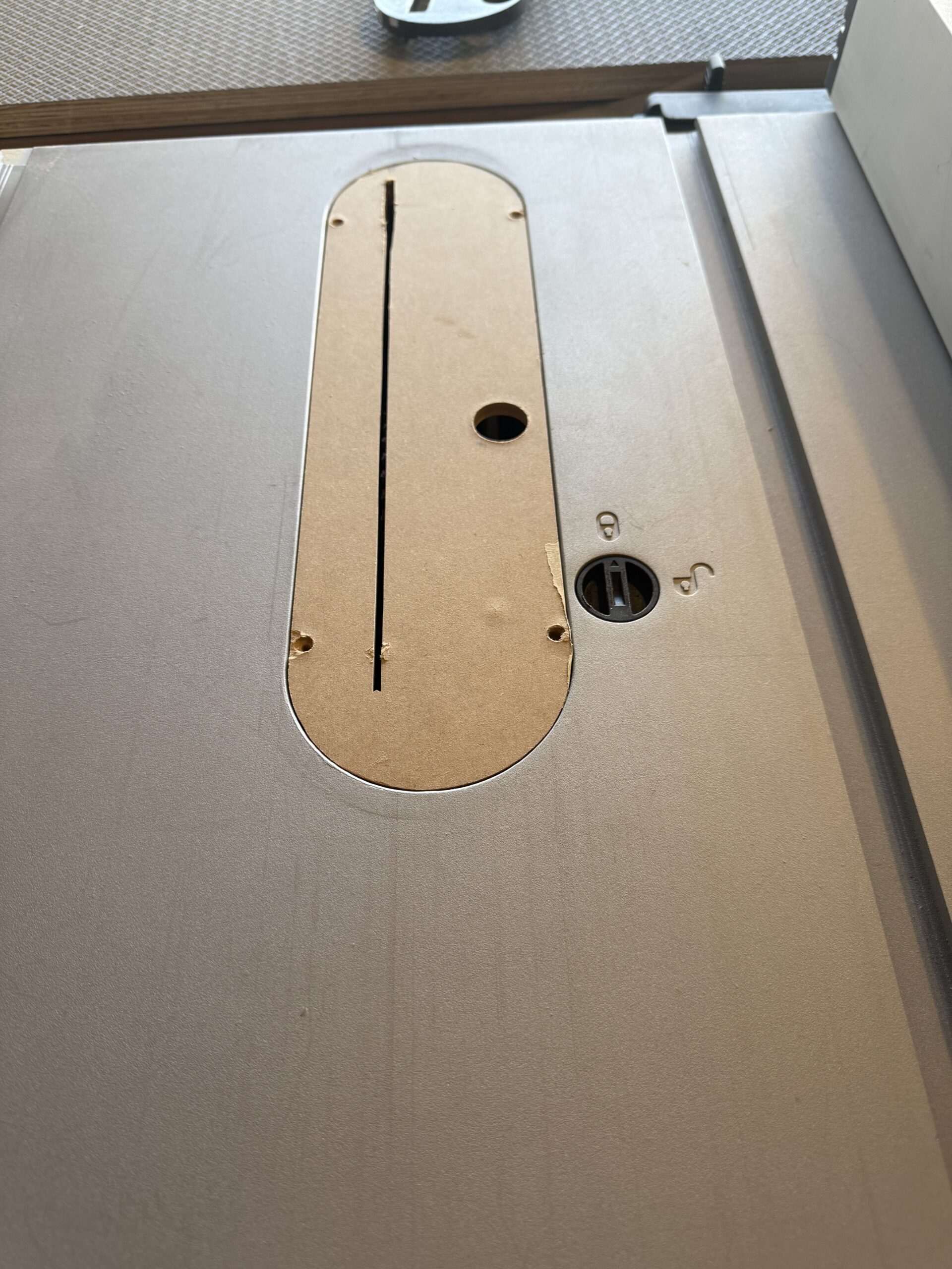To create the thin ripped boards, I needed a zero-clearance throat plate for my table saw. I couldn’t find one for purchase, so I made my own. This allows you to rip the really thin cuts without them falling or catching in the hole of the normal clearance plate.