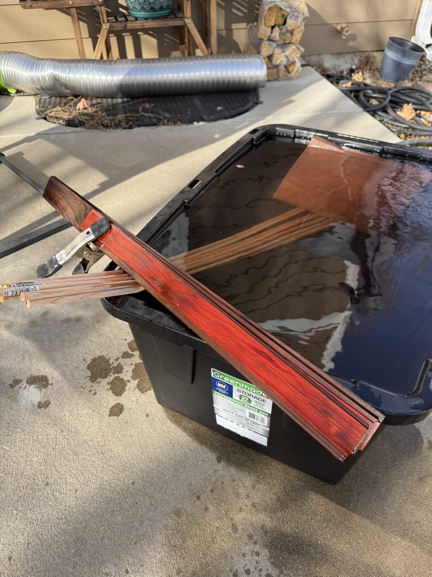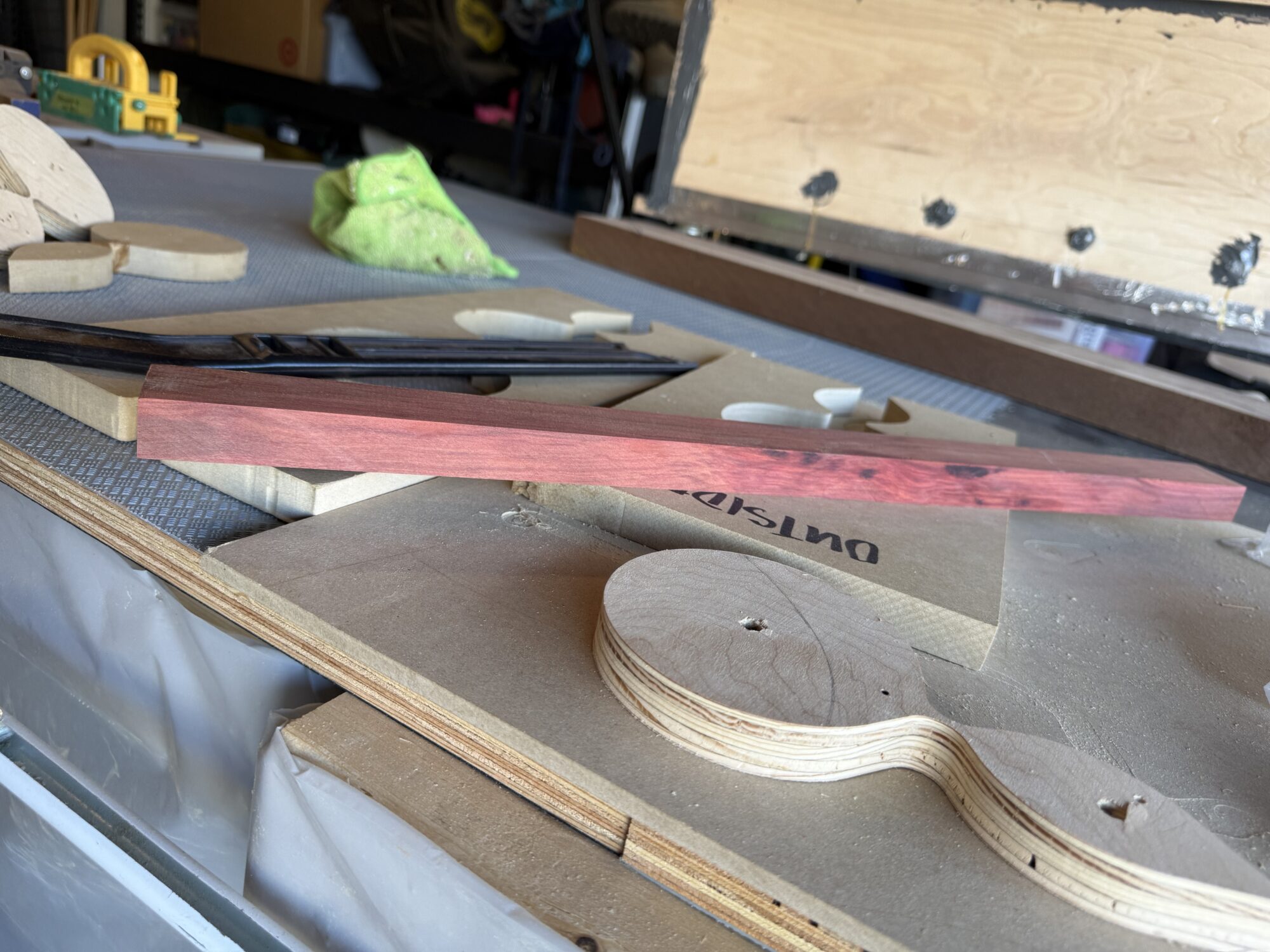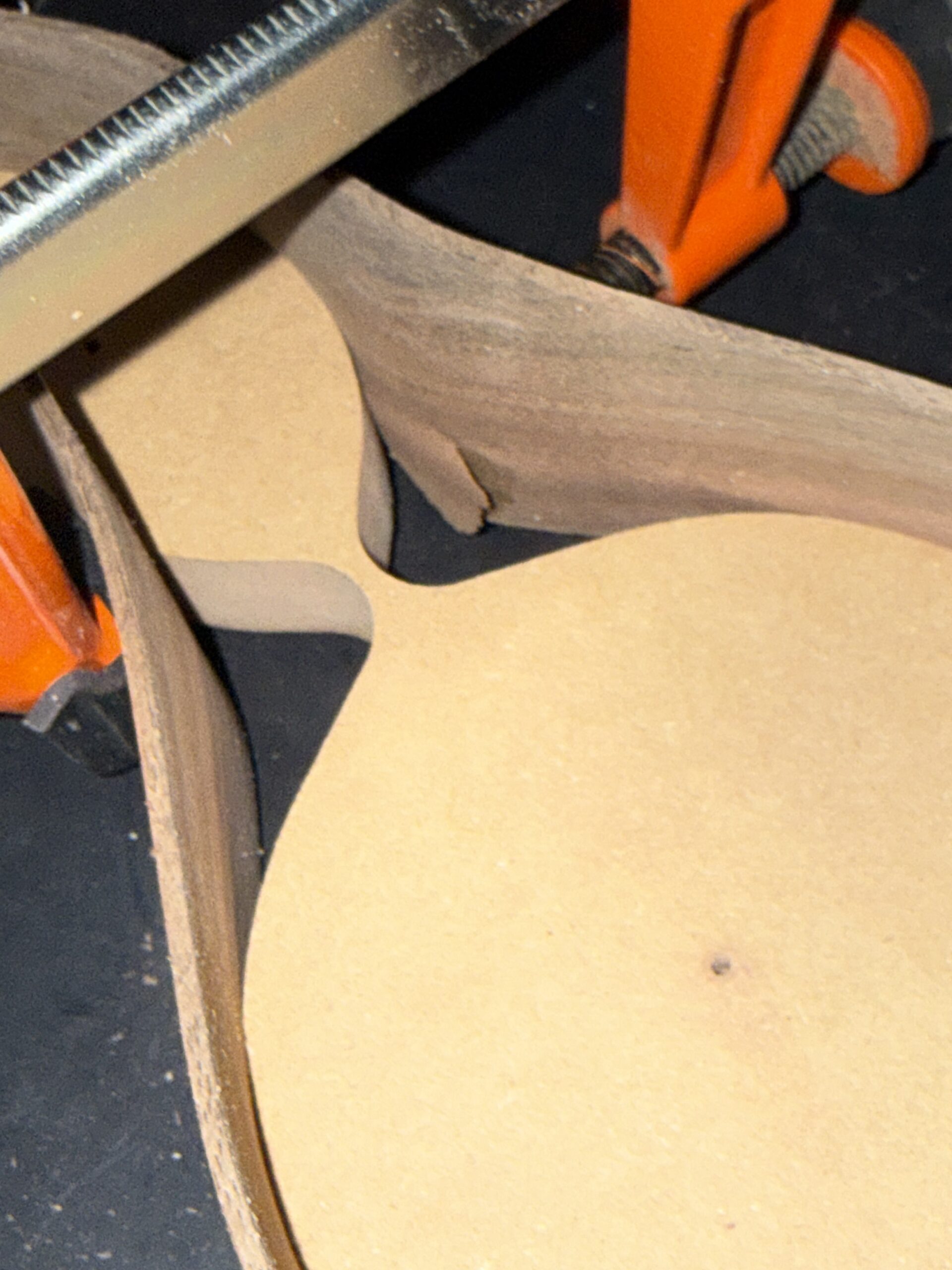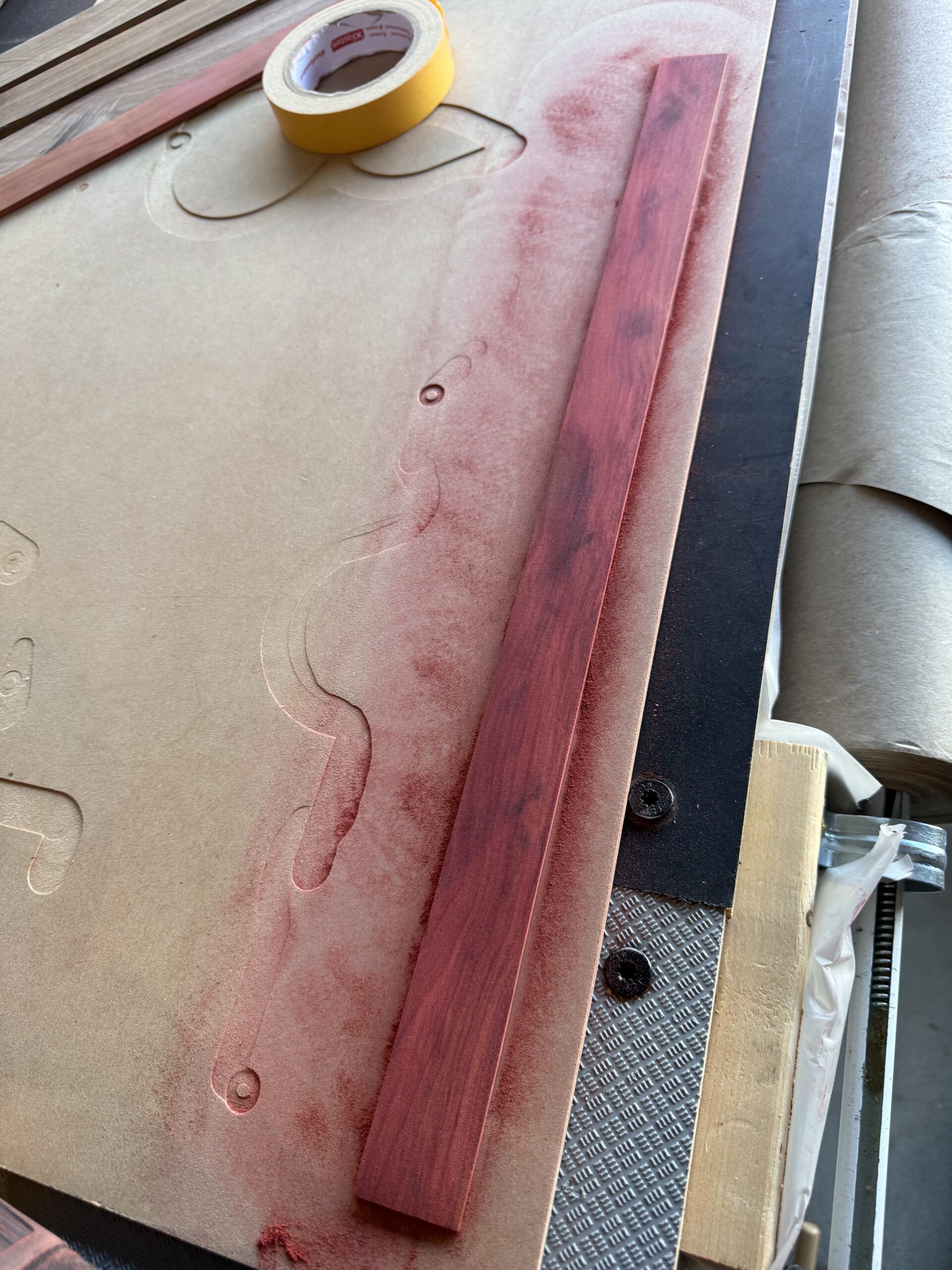 The purpleheart wood developed odd blue discolorations after steaming, and the soak wasn’t enough to overcome the effects of kiln-drying. In the end, I went with walnut.