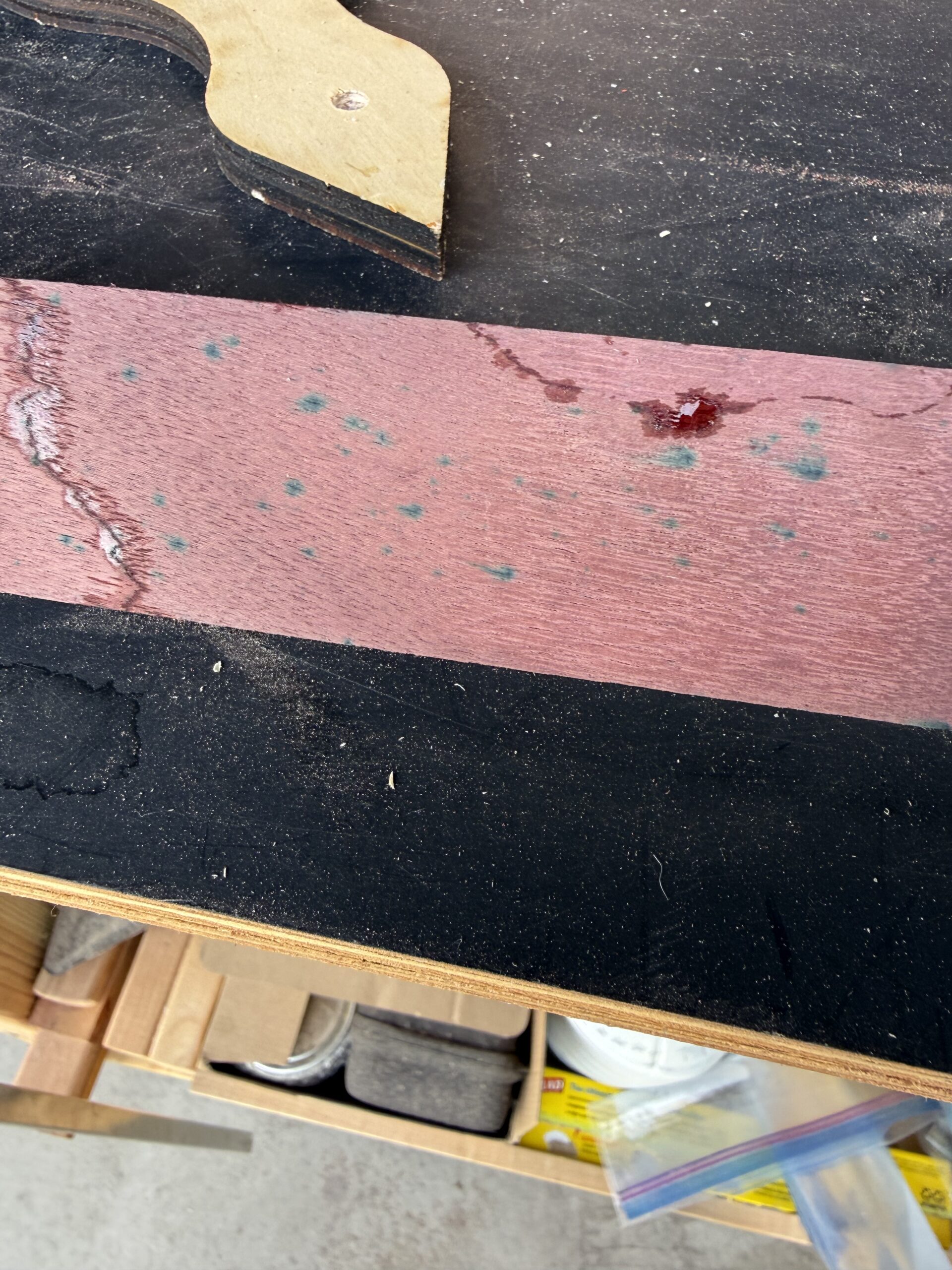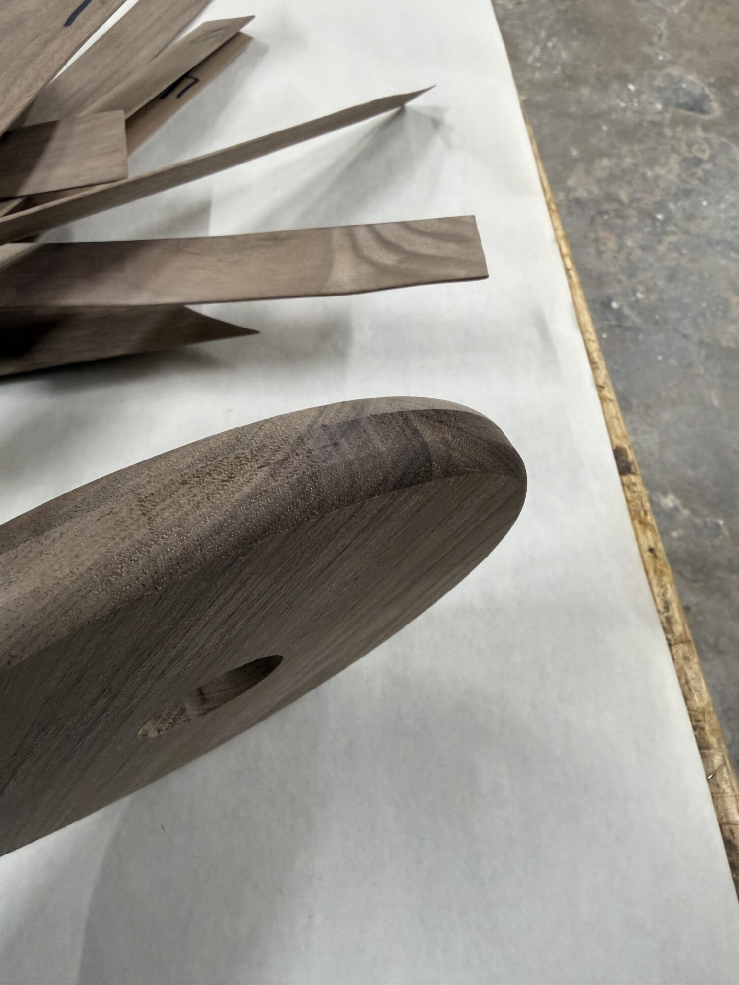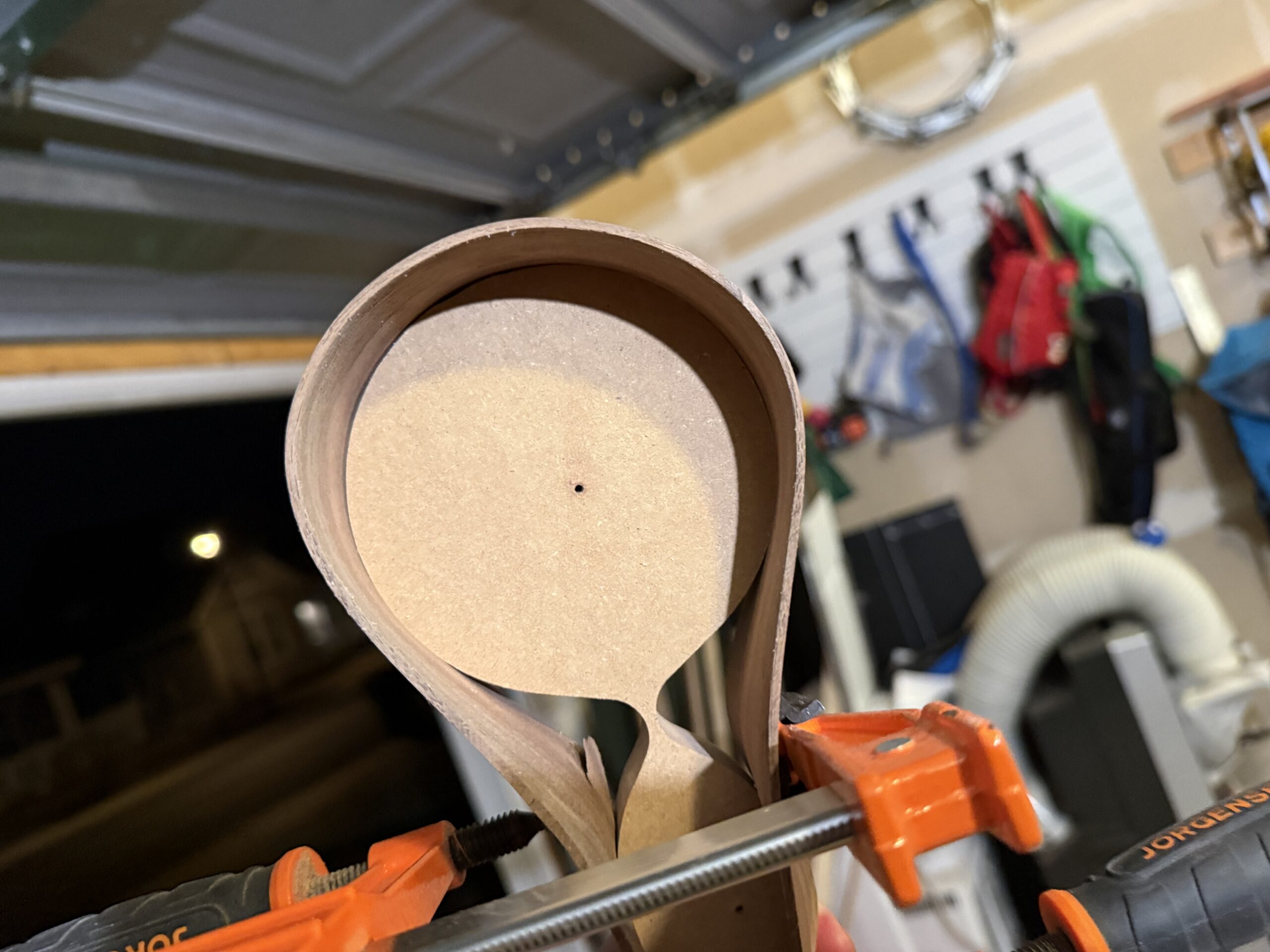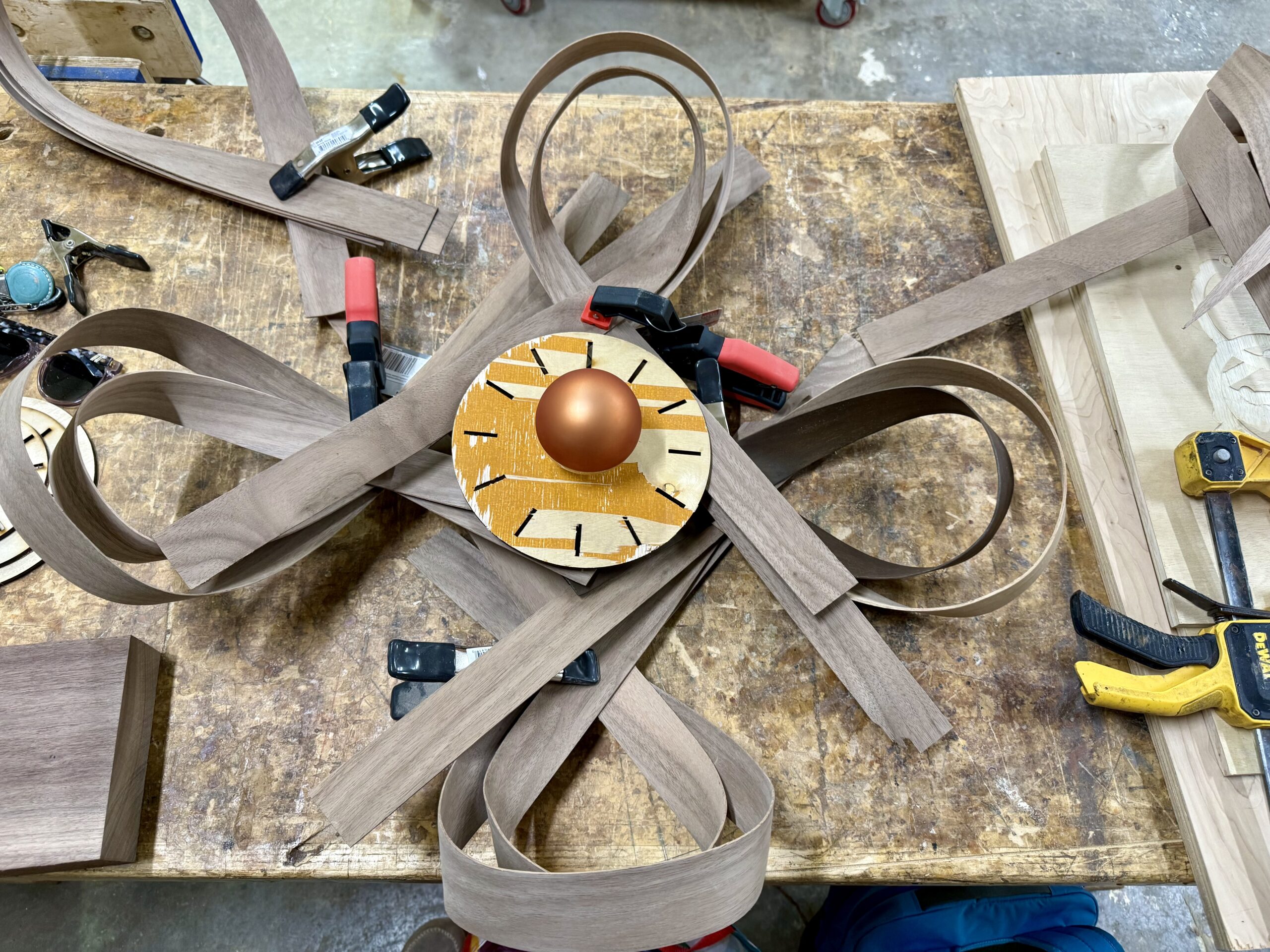 The purpleheart wood developed odd blue discolorations after steaming, and the soak wasn’t enough to overcome the effects of kiln-drying. In the end, I went with walnut.
