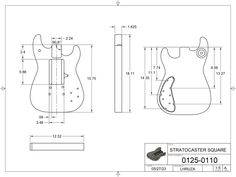 First I used an engineering drawing of a guitar with the same body as mine to get the general dimensions for my stand. This ensured that everything would be easy to dimension later in CAD.