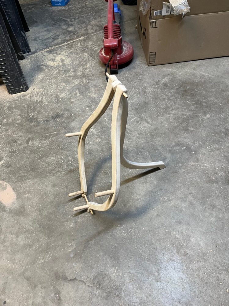 A very small amount of wood glue, zero fasteners, and many many hours of sanding have turned these pieces of plywood and dowel into a piece of craftsmanship that I would deem worthy of representing the 19th century arts and crafts movement.
