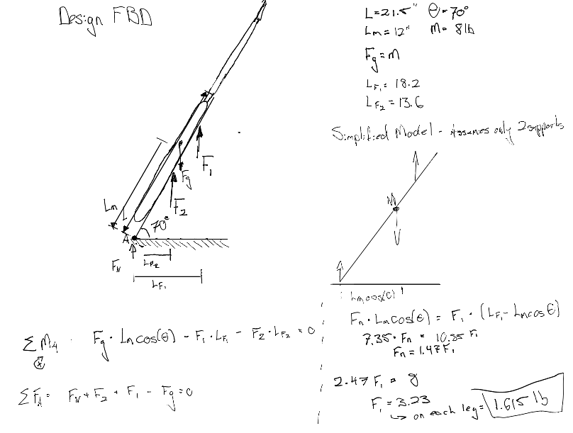 To ensure that I build substantial supports I drew a free body diagram with an overestimated weight of the guitar to figure out how much weight the stand would need to support which ended up being about 3.5 lbs in total.