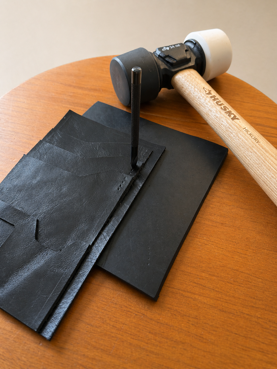 After transferring the template to leather, I hand-punched holes and stitched the wallet together. Installing the zipper was the most difficult part, as it was hard to align and kept coming off track, but it was resolved with adjustments.