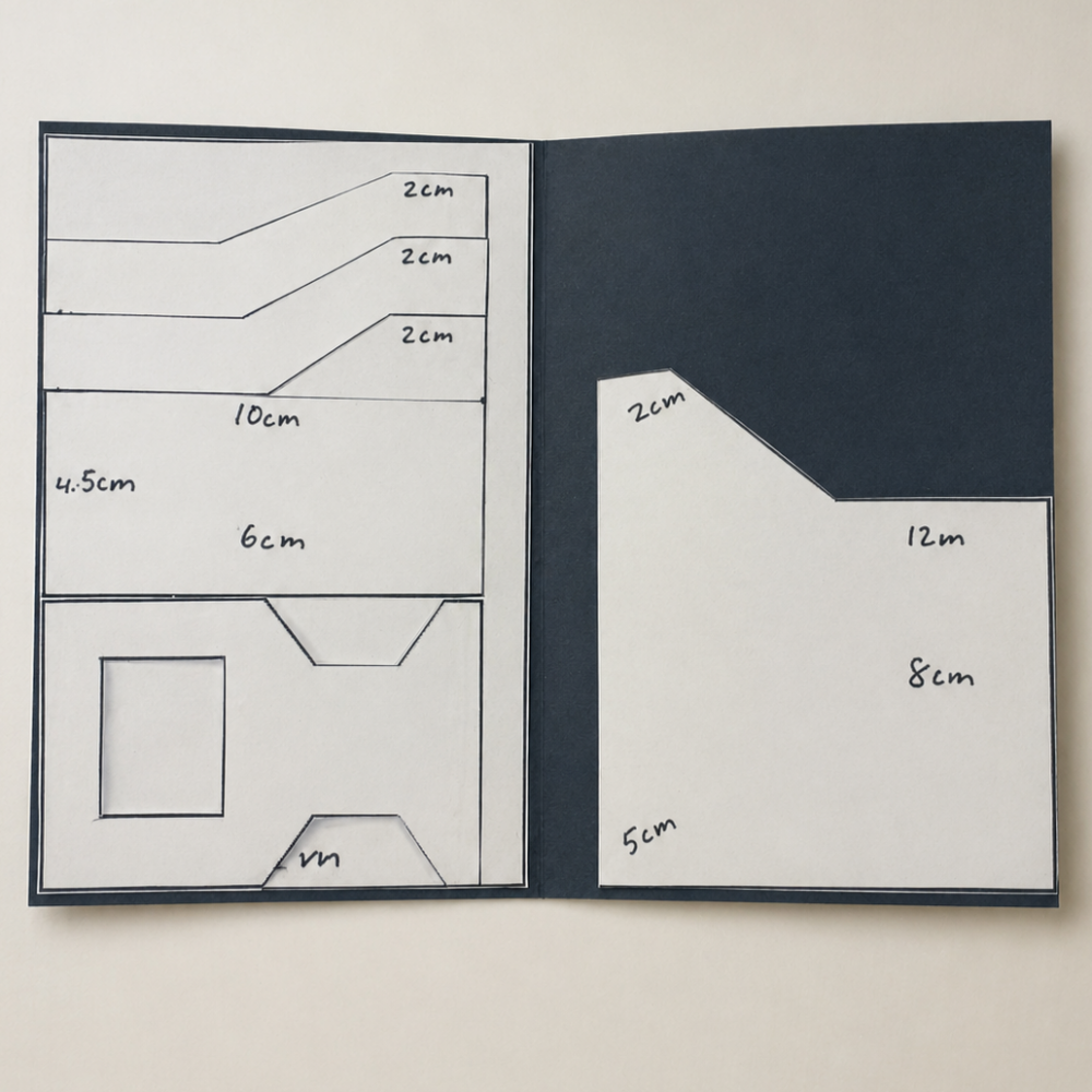 I chose to create a passport wallet for my summer travels. While waiting on materials, I made a CAD-based paper template so I could print it to scale and be ready to begin fabrication.
