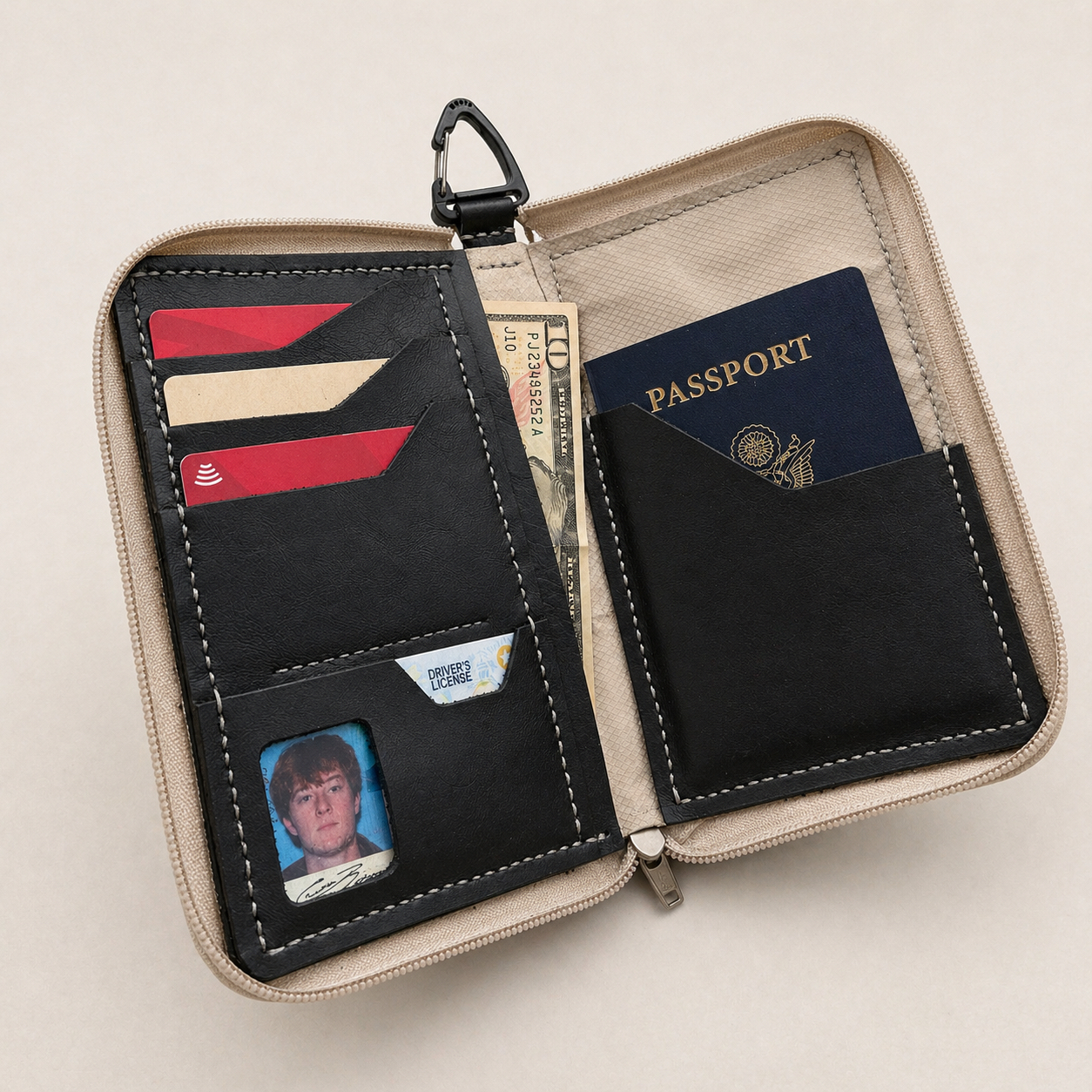 This project explores the contrast between tradition and innovation by combining leather with a modern techwear aesthetic. By using features like RFID-blocking, a monochrome palette, and sharp geometric forms, the design reimagines leather as a more technical, contemporary material.