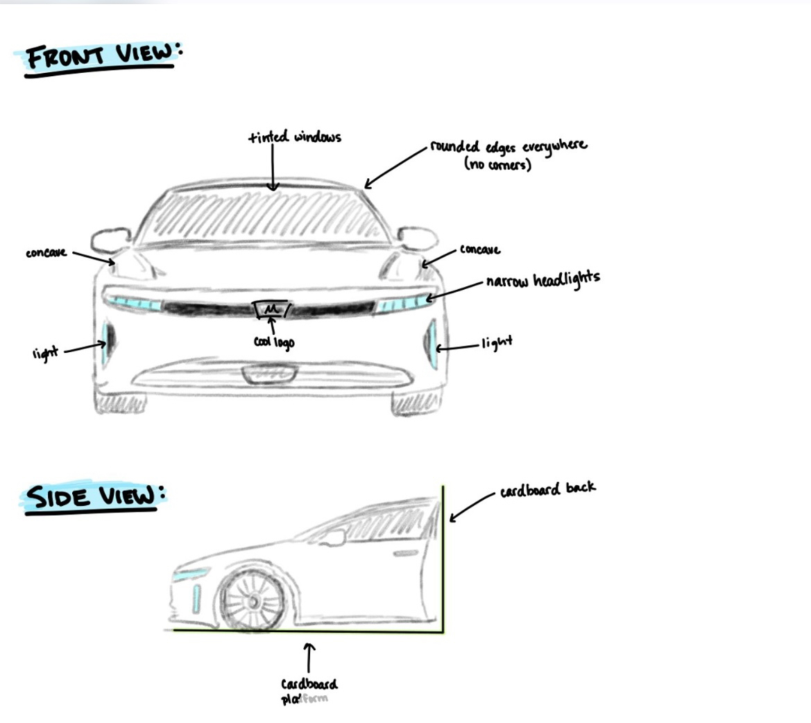 My electric car design ream started out with some preliminary sketches just to get an idea of where to go. Sketches.