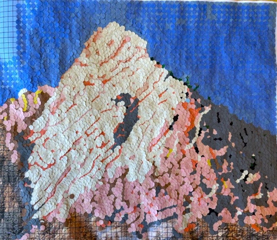Hyperbolic Beehive: Upcycled in Folds, Hanging Beehive Art