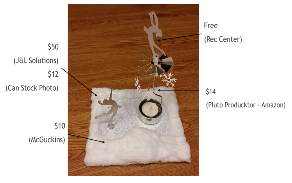 This project is inspired by Scandinavian design rotary candle holders, with a personal touch to it. My mom was a figure skater, so I made the candle holder complete with an ice skater rotating on top of the turbine, and a frozen pond at the base. See the links below for more depth into the timeline and design process of this project.