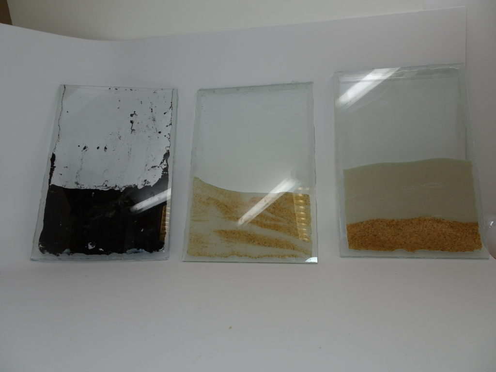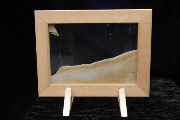 The Sand Frame houses sand, air bubbles and a fluid medium that drives the motion of the sand. When the frame is flipped upside down sand isΒ trapped and held by air bubbles, but since the buoyancy of the air bubbles is not strong enough to hold the heavy sand the sand finds a way to escape between bubbles and falls to the base creating an aesthetically pleasing visual effect.