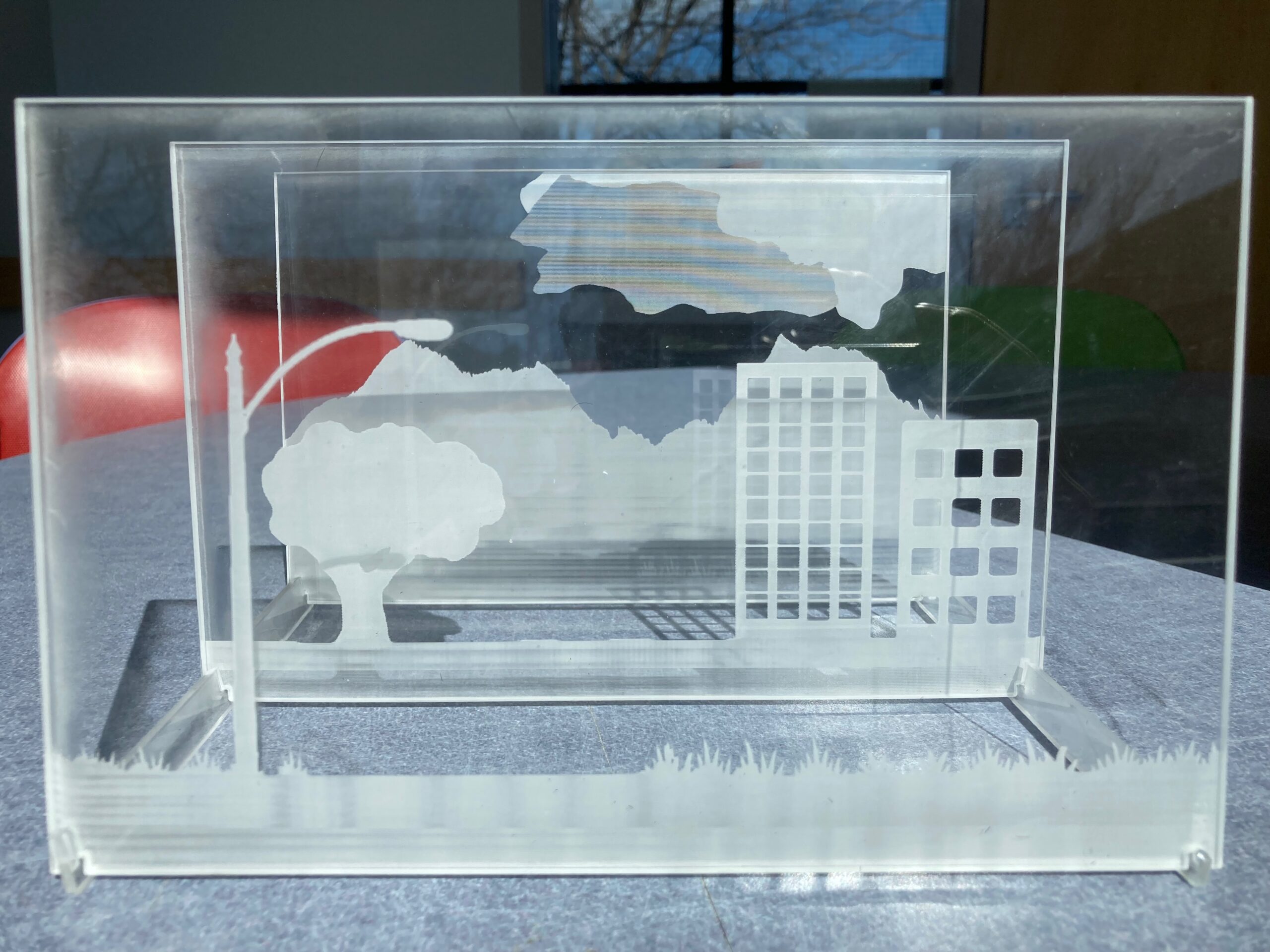 I have chosen to forgo the provided prompt this week on the top five specifications and top five constraints for a more general progress update, as time is undeniably my largest constraint this semester. However, I have successfully designed and laser cut my initial test for the tunnel book panes. Layout sketch for the test…