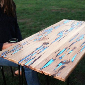 Multifunctional Reclaimed Wood Resin Glow Table