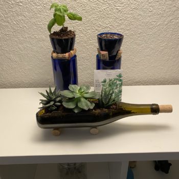For my upcycle project I am repurposing three wine bottles into sustainable modern indoor planters. Two of the planters are self watering herb planters and one is a succulent boat planter. For the past few weeks I have been hard at work learning to cut and finish glass bottles to use them for my planters…