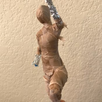 The upcycling aesthetic that I chose was one of triumph and adventure. I decided to create a statue with a heroic pose made primarily out of a plastic bag, at least from the outside. The materials I gathered for the piece were pipe-cleaners, tinfoil, a small paper cup, and a plastic bag. Following the basic…