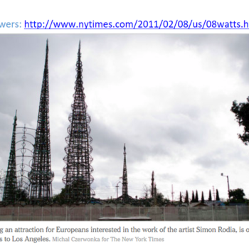 We looked at a few examples of upcycling, including Simon Rodia’s Watts Towers, and didn’t have much time for the Aesthetics Tour, so please see the rest of the tour in the Lecture Notes