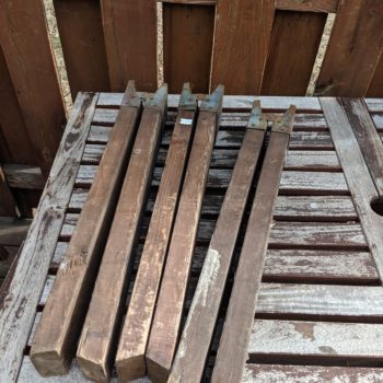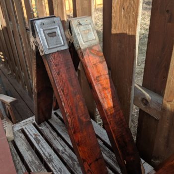 The first step of things was to restore the sawhorses. I used a wire brush and sandpaper to clean the rust off of the brackets and clean the wood before staining. Raw sawhorses cleaning the brackets cleaned sawhorse right raw sawhorse left. After restoring the sawhorses I played around with how I would orient them.…