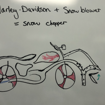 We did a design exercise using a product and an aesthetic. Product – Snowblower Aesthetic – Biker Culture