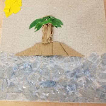 For my upcycle project I created an image with upcycled materials. I used plastic bottles to create an ocean and symbolize the problem with ocean plastic and the detrimental effects it plays on the ecosystem. I created an image of an island using cardboard, paper, and artificial leaves to overall create a palm tree. It…