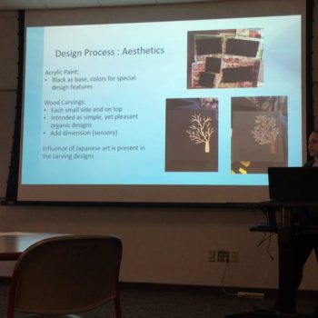 Watch final presentation here: https://www.youtube.com/watch?v=2ZJpg1roPRw Watch prototype presentation here : https://www.youtube.com/watch?v=y6-sinySjLE Pictures of the final product at the ITLL Design Expo on April 29th, 2017. Curtesy of Professor Jean Hertzberg.
