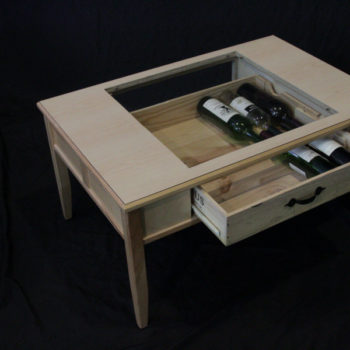 I have purchased almost all of the materials I will need to finish my wine inspired coffee table. I purchased a very nice, light colored coffee table from goodwill for only $20. The table was measured and then disassembled into pieces for further fabrication. I am currently in the process of converting two wine boxes…