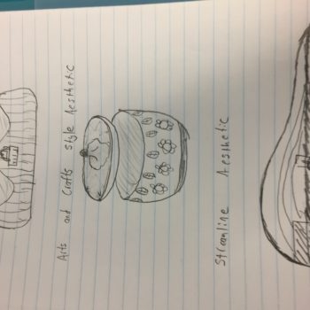 Curvy modern aesthetic – This design is very curvy, more so than the drawing actually shows. I want this design be a little more modern and inviting. but it will be a little hard to manufacture Arts and crafts style aesthetic– This design is basically a pottery style design. I think it would be cool to…