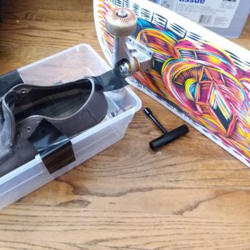For my first prototype, I created a Moonshoe/skate hybrid, which I dubbed Moonskates. After going through a couple sketches like below: I started fabricating a prototype. Firstly, I purchased a clear plastic bin from Target that serves as the holder for the shoe. I then taped an old skate shoe such that it was suspended…