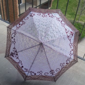 This post summarizes the exact process of how I made this parasol! *Note some parts are copied from previous updates. First I purchase an auto-open cane umbrella that was decently priced on amazon. I removed the original black plastic umbrella fabric and have used it to measure and cut all eight white lace panels needed…