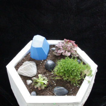 The desk garden is currently a nice addition to my desk. I made it because I like plants and wanted to start keeping some. My desk is a little bare, so the desk garden livens it up. Originally, I thought I would use a square footprint and that the planter would have an overhead watering…