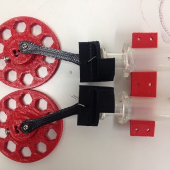 After having some troubles with the 3D printer, I’ve finally gotten some critical parts tweaked and finished. I had to make some updates to the fly wheels so account for the screws that I had. Â The connecting rods attach much more nicely now with less play. The fly wheels now have a set screw…