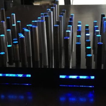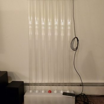 Project Description The Levitation Audio Visualizer is a dynamic sculptural-like device that allows a user to interact with music in a new way. Seven ping pong balls are suspended in clear columns using fans, and their suspended height is changed according to filtered frequency bands of input audio. The enclosure is made of opaque white acrylic which is illuminated by high power…