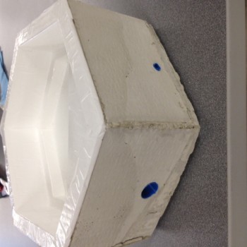 I made the structure! Yay! It was super frustrating and took way too long, but I did it. Let me tell you the story with pictures and several words… I coated the mold for the base with WD-40. WD-40. Nothing seems wrong yet… Then I mixed up a batch of fast setting concrete. This stuff…