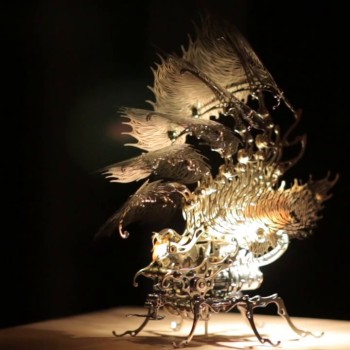Several students chose military hardware as upcycle source material, and made benign objects from it, like Ethan Gehring’s nutcracker from a grenade casing, Shen Shu’s toy cannon, and Chad Alvarez‘s string of shotgun shell lights.     Here is a full scale example from Kris Kuksi, a “post-industrial Rococco master”artist. Many layers of meaning here.