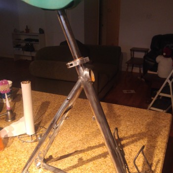The stool, made from a bike rear triangle. [1]While looking at bike stuff on the internet, I came across these stools. I have some scrap frames and junker bikes, so I filed this away as a project. Realizing that there is so much more that can be done with these, I decided to switch away…