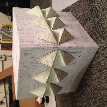 I still have a pile of old homework assignments from last year, so I thought about what I could do with all of that paper (besides throw it away). I also happen to need a nightstand, so I began thinking of ways to use paper. I used to dabble in origami as a kid, so what if…